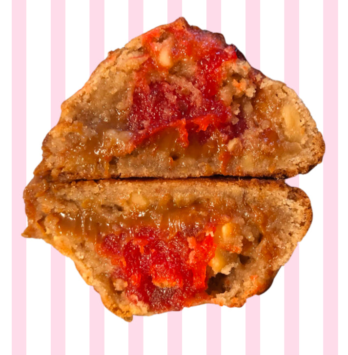 A cookie like no other! Our Guava Bite combines the sweet, tropical flavor of guava, the rich creaminess of dulce de leche, and the nutty crunch of walnuts for an unforgettable treat. Each bite is the perfect blend of buttery, fruity, and caramelized goodness, with just the right amount of texture and sweetness.